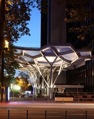Baumartiges Geflecht aus Stahl - Spektakuläres Gebäudevordach am Frankfurter Westend