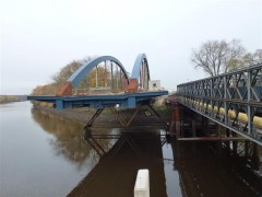 Im Zuge der Arbeiten wurde der vorhandene Stahlüberbau durch die ARGE zunächst komplett zurückgebaut. Dafür wurde die alte Brücke über eine Verschubkonstruktion auf den nördlichen Straßendamm geschoben. Zerlegt und abtransportiert machte sie den Weg frei für das neue 70 Meter lange und 17 Meter breite Bauwerk. Das wurde jetzt von der Nordseite über den Fluss geschoben und liegt nun an seinem Platz. Bis zum Frühjahr 2013 sollen alle Arbeiten abgeschlossen ein. Dem Verkehr steht während der Bauphase eine Behelfsbrücke zur Verfügung.