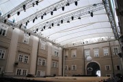 Der allseitig geschlossene Hof im denkmalgeschützten Ensemble der Alten Residenz lädt zu einem vergleichsweise intimen Kunstgenuss unter freiem Himmel ein. Das neue wandelbare Membrandach, das sich in nur wenigen Minuten öffnen und schließen lässt, erlaubt es nun, auch bei Schlechtwetter Operninszenierungen aufzuführen.